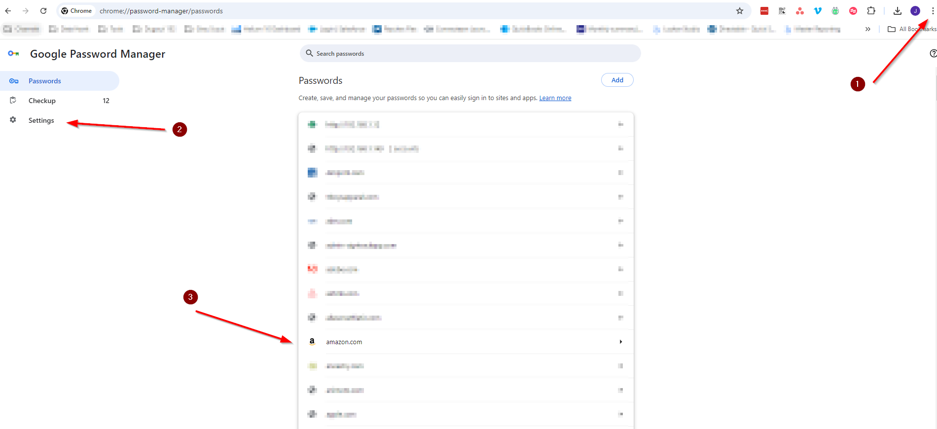 Step 1: Head into Chrome Password Manager to remove all Amazon passwords (and other applicable) to avoid browser confusion with 1Pass.