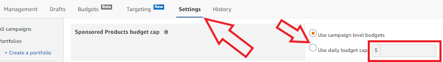Sponsored Products: Use the Account Setting to set the hard budget cap.
