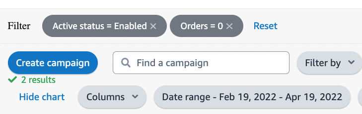 Never pause a campaign with a high amount of orders >5 in the last 60 days even if the ACOS it’s high. We need to protect the account and we don’t want to lose traction on the ads.