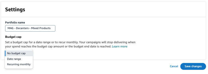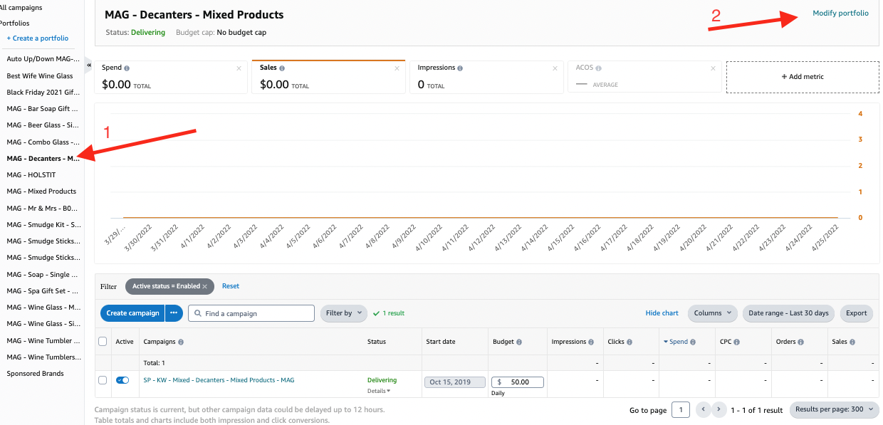 Each campaign has to have a portfolio. When we rename the old campaigns we need to assign them a portfolio. The only campaign that doesn’t accept portfolios is the Sponsored Display Audience campaign.