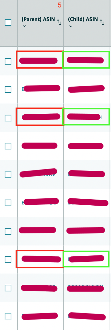 It is imperative to discern between the Parent ASIN and the Child ASIN, ascertaining their unique identities. The visual aid provided illustrates the Parent ASIN clearly demarcated in red and the Child ASIN demarcated in green.