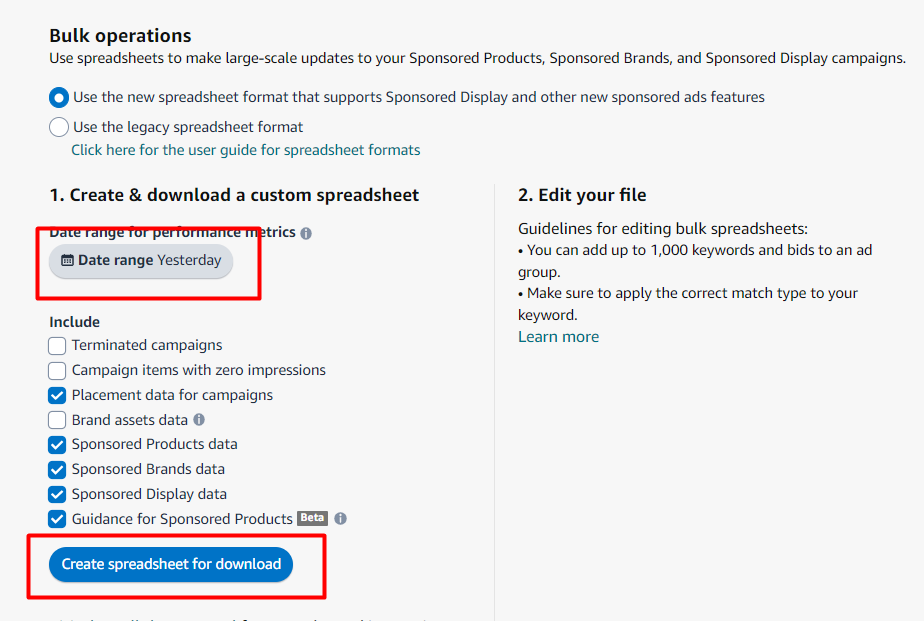 Objective: This SOP aims to provide a step-by-step guide on how to generate a Bulk File ready for upload for Customer Search Terms to be negated based on the parameters that you can set (Clicks, Spending, and Orders)