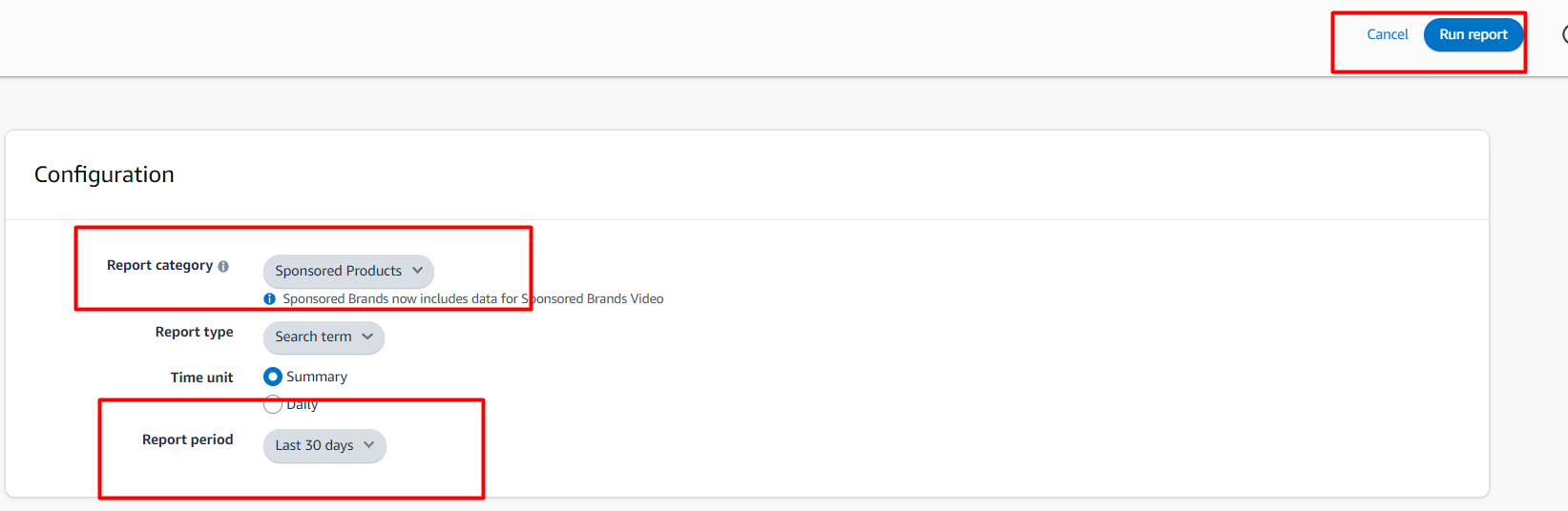 Generate a Sponsored Products Search Term Report (Chosen date range)