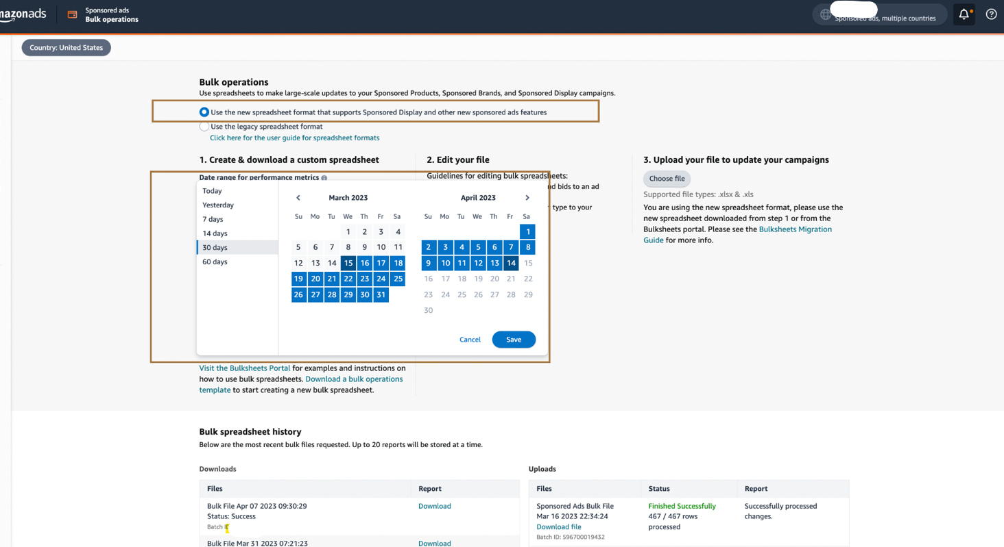 There is a two-day attribution window. When downloading bulk operations, exclude the last two days from the data as this data is still being processed by Amazon and may not be accurate. For example, when downloading a 30-day bulk file, download Jan 23 to Feb 23 (assuming today is February 25).
