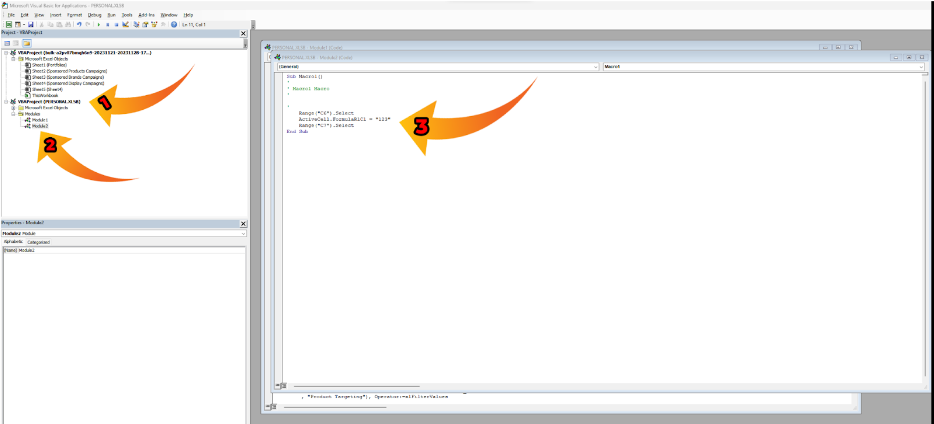 (In this example, it’s in module 2 because I already have a Macro in Module 1.)