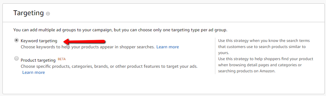 4. Choose Keyword Targeting