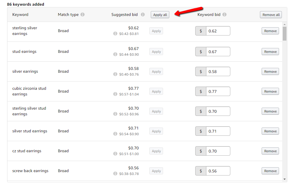 6. Apply suggested bid