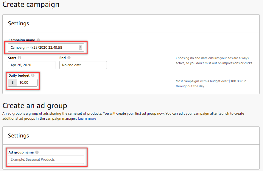 Important note: The placement of each items in the "Create Campaign" page will be different depending on updates from Amazon, but, the steps will essentially be the same.