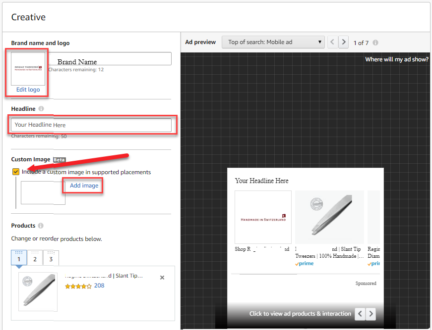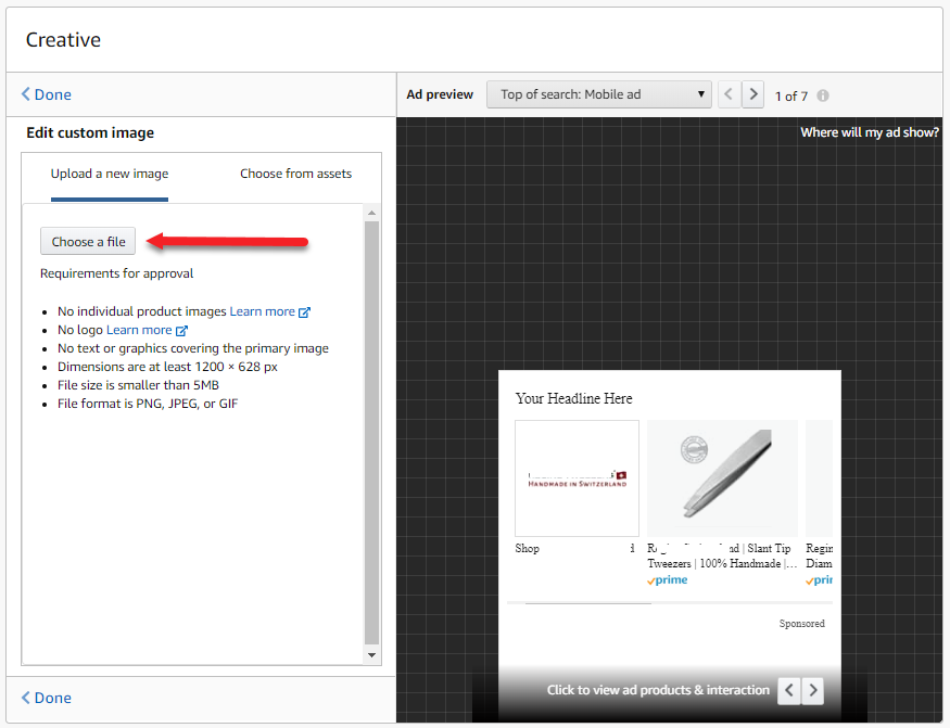 V. Create custom image headline ad using asset from sellers