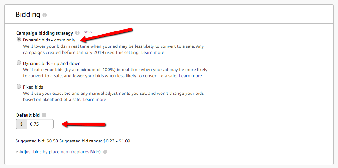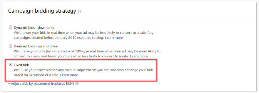 3. Set Bidding Strategy - Fixed Bids only