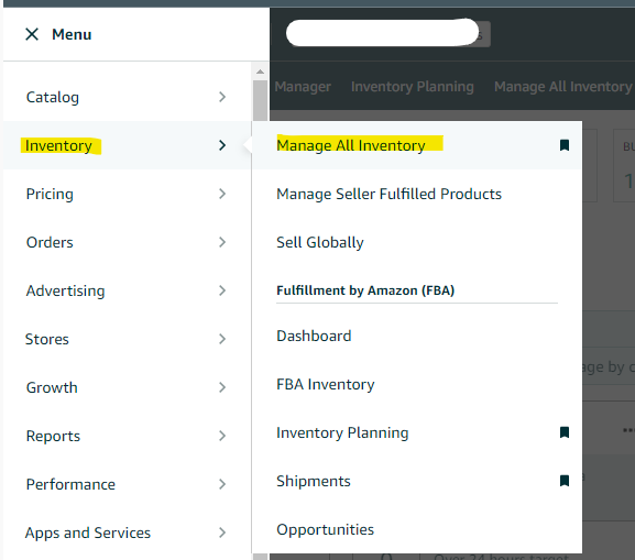 2. Go to Manage All Inventory to see what products they currently have. This will help you create ad groups depending on the product.
