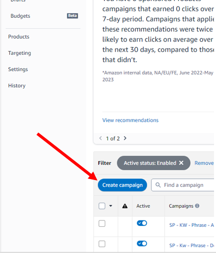 1. Select Sponsored Products campaign.