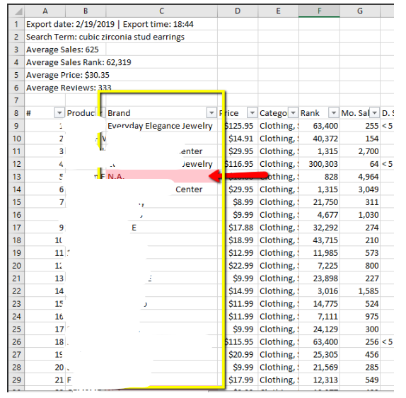 5. Open the downloaded file. Copy all the brand names and paste it on the sheet