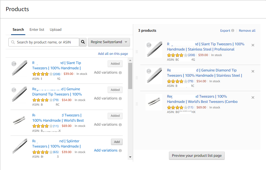 4. Set the bid to $0.15 and click on Individual products and Enter List. In the box, add each of the ASIN from the catalog. Then finish by clicking Launch Campaign.