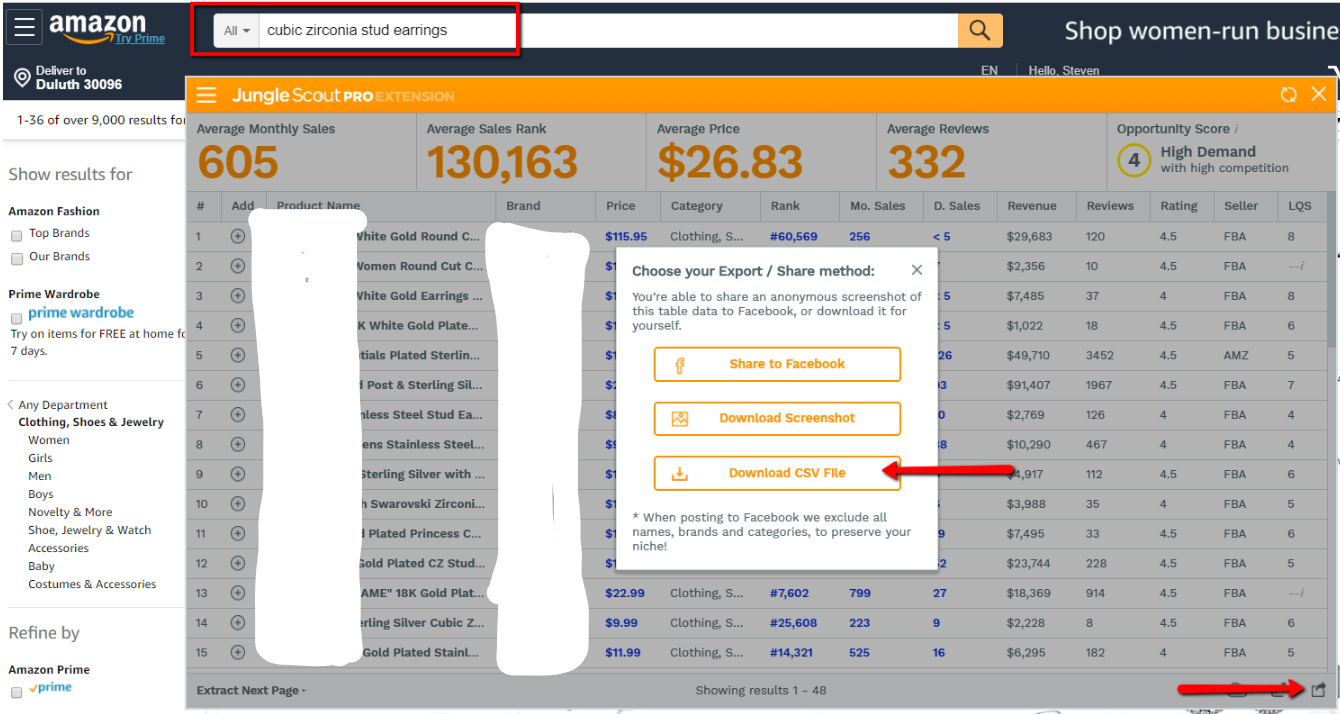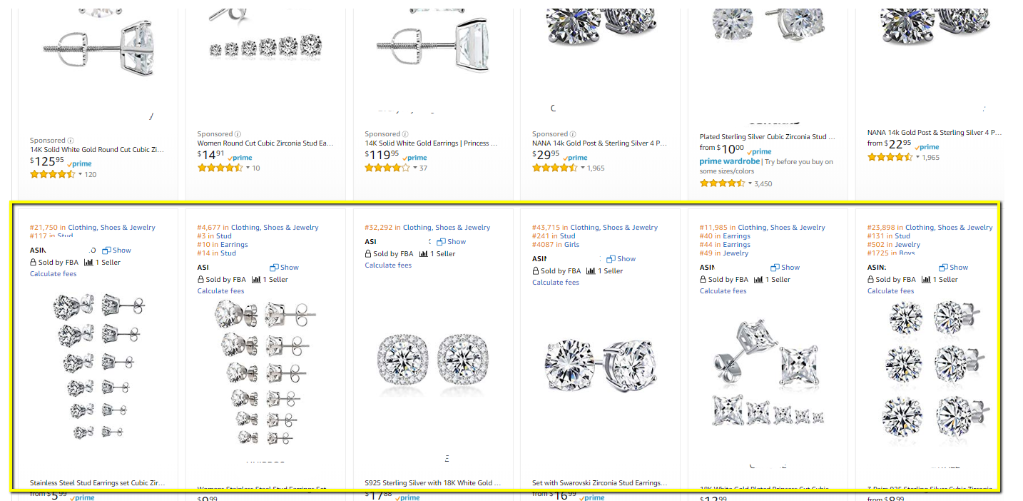 2. Go to Amazon and search for similar products using the most search keyword you found. Once loaded, use Junglescout to show all