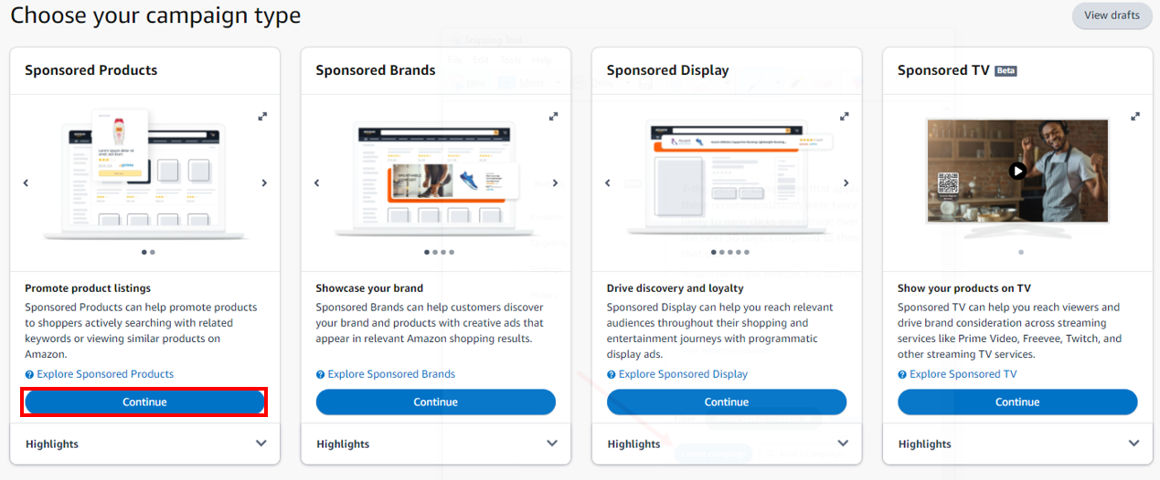 1. Select Sponsored Display Campaign