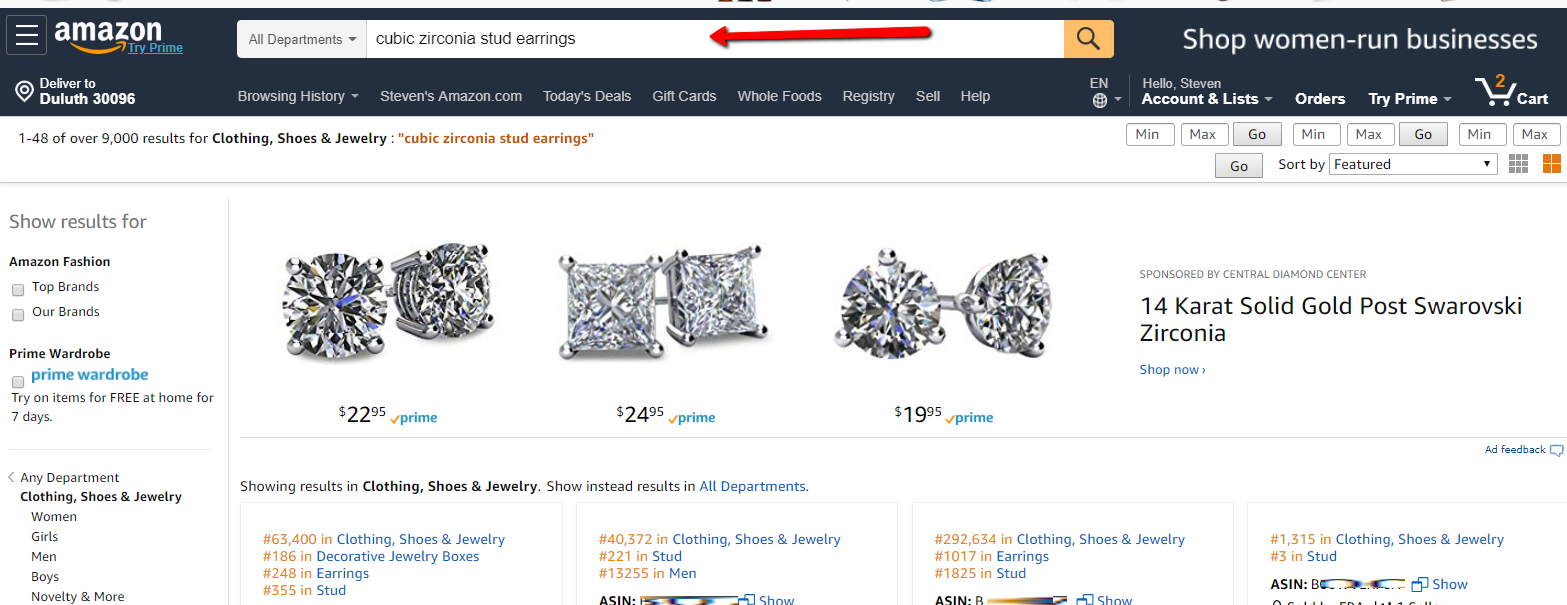 6. Go to Amazon and search for the same kind of product you are creating the keywords for