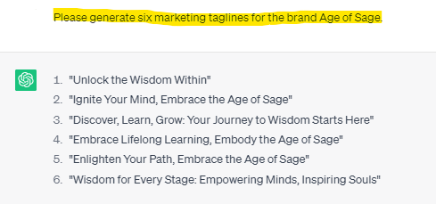 3. Please generate six marketing taglines for the brand *[insert brand name]*