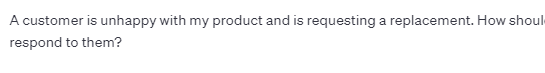 4. A customer is unhappy with my product and is requesting a replacement. How should I respond to them?