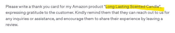 2. Write a thank you card for my Amazon product, [PRODUCT NAME], expressing gratitude to the customer. Kindly remind them that they can reach out to us for any inquiries or assistance, and encourage them to share their experience by leaving a review.