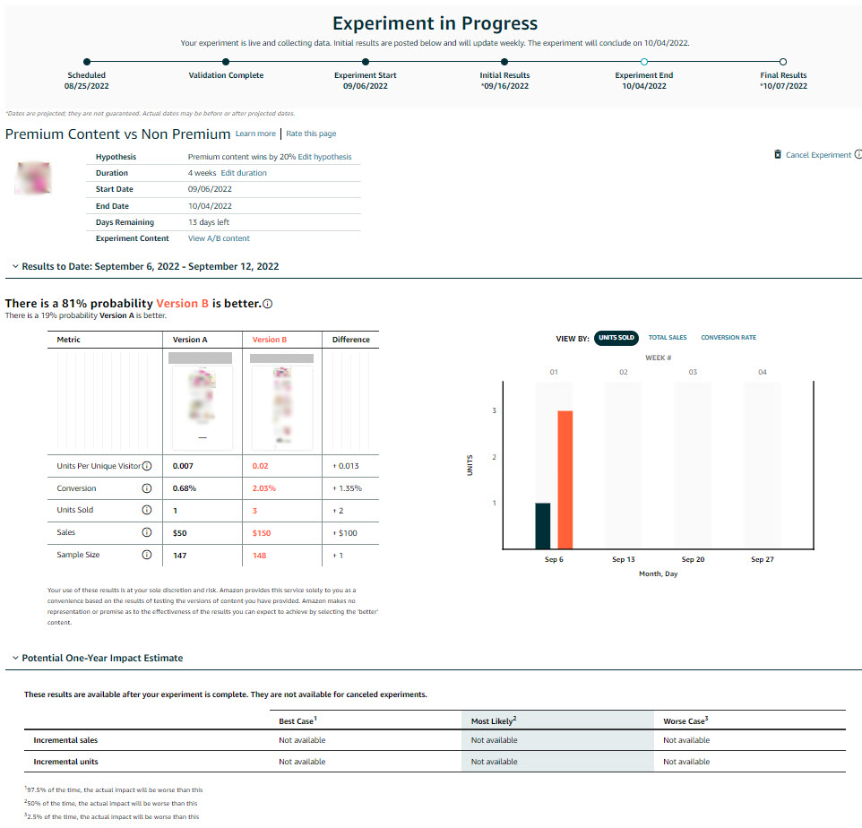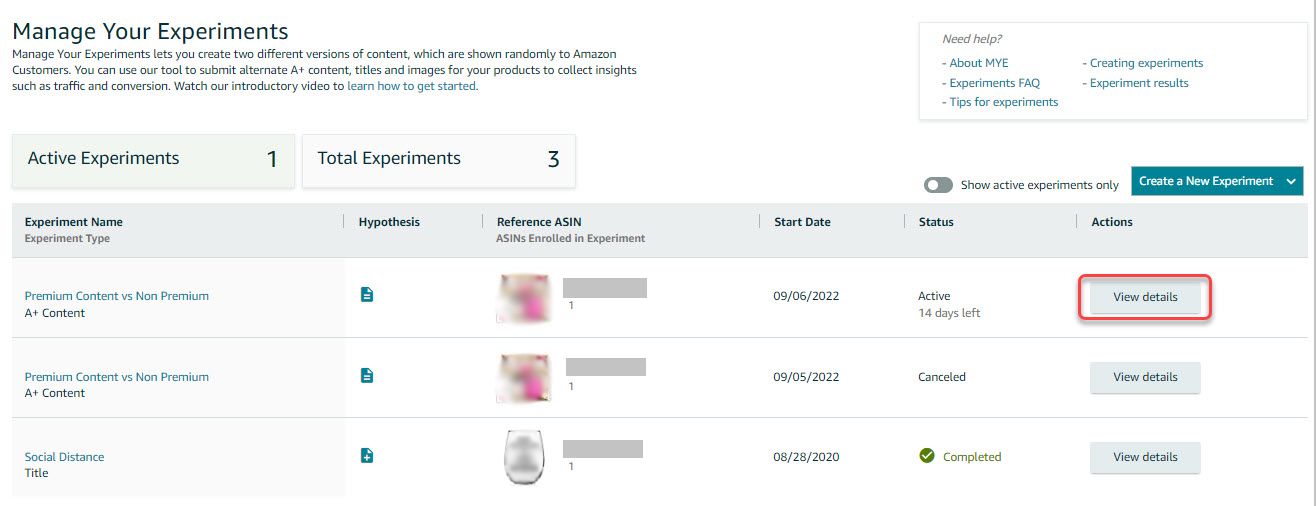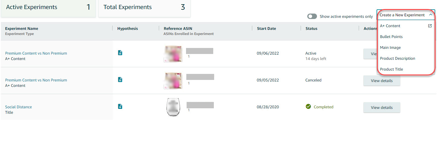 - You can run an experiment for A+ Content, Bullet Points, Main Image, Product Description, and Product Title.