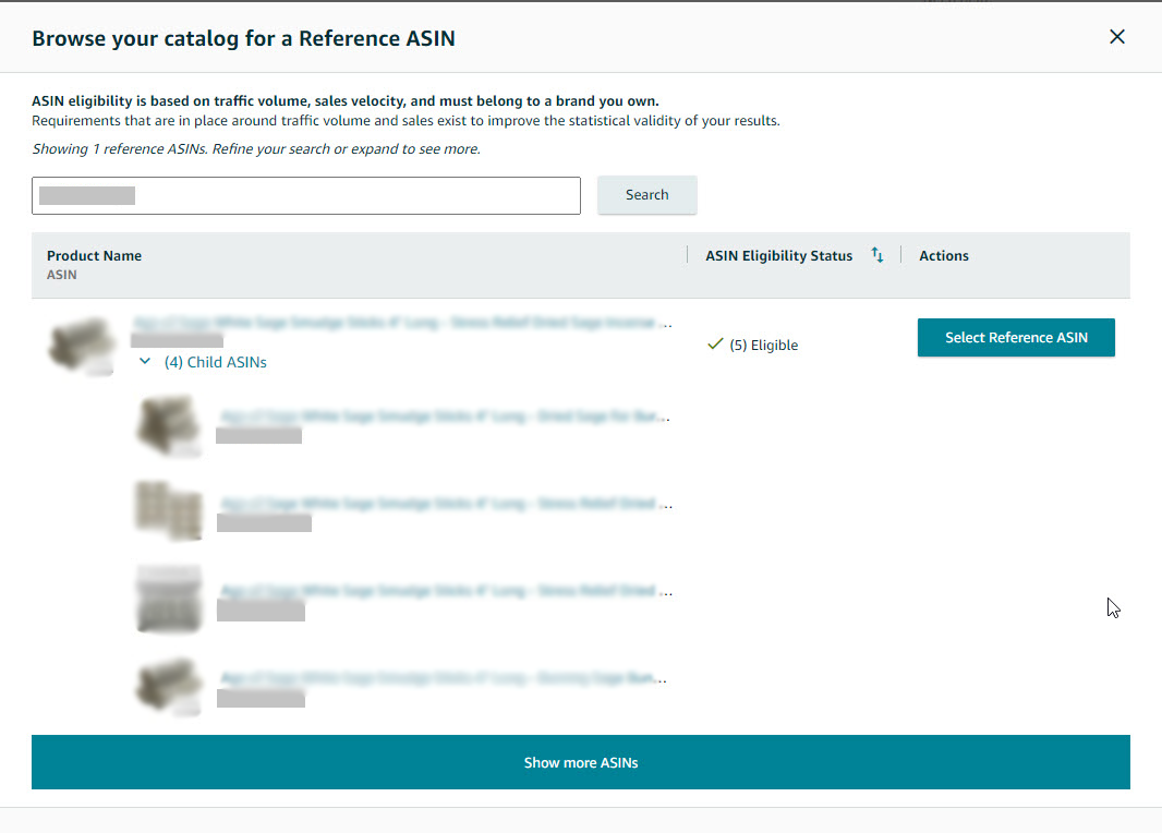 - If the ASIN is part of a variation, you will need to select first the whole parentage as the reference ASIN.
