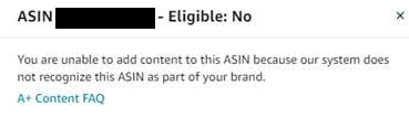 We are unable to add A+ content on our ASIN (Put the ASIN). It says it's not eligible.