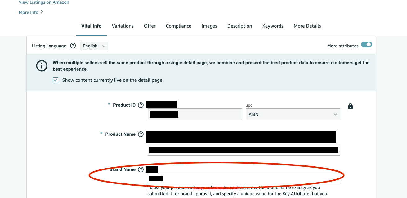 Note: if you do not see the Brand Name under Edit Listing anymore, it would mean that the account already transitioned to Amazon's new Edit listing interface. In this case, skip step 1 and proceed to step 2 onwards.