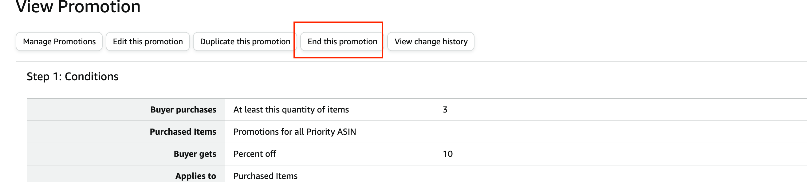5. On the Percentage Off Promotion page, click the "End this Promotion" button.