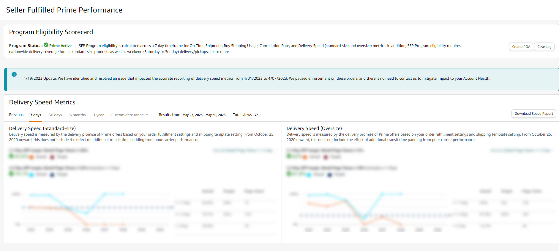 5. The next page will now display Program Eligibility Scorecard, Delivery Speed Metrics, and Delivery Performance Metrics.
