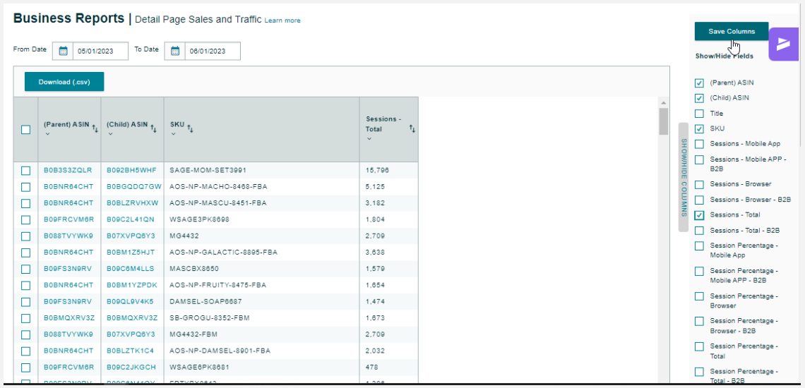 Objective: The objective of this SOP is to provide a step-by-step guide on how to download a Detail Page Sales and Traffic Report on Seller Central. By following these instructions, users will be able to access and customize the report according to their requirements.