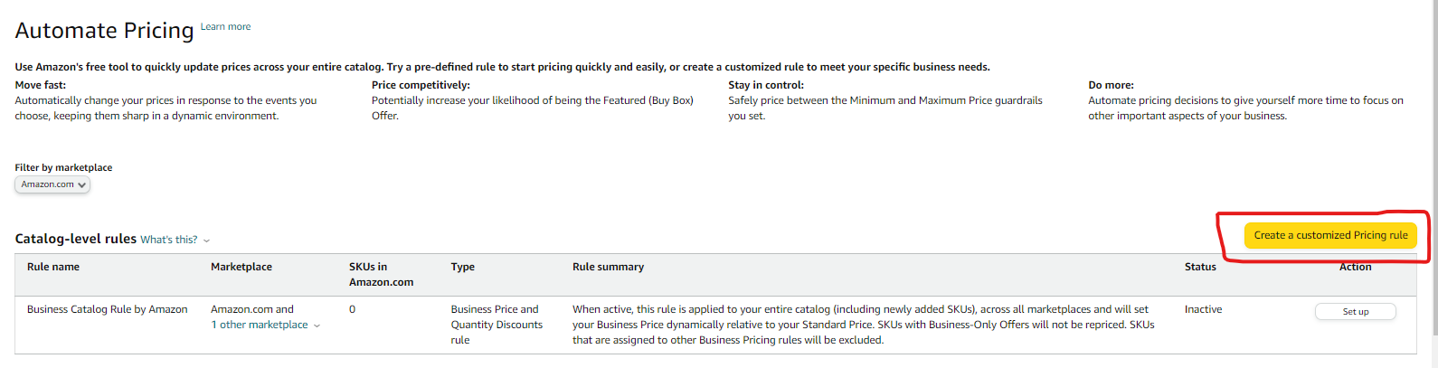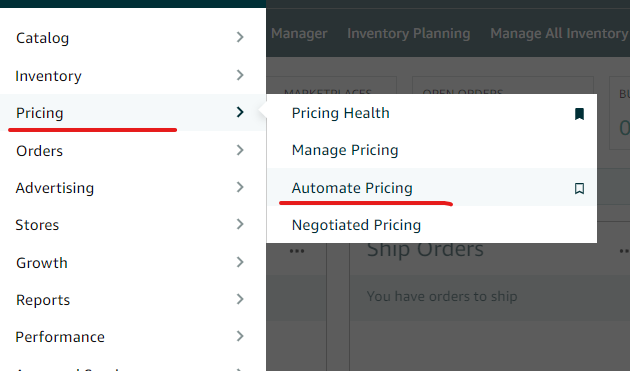1. Go to "Pricing" tab and then select "Automate Pricing" in Seller Central.
