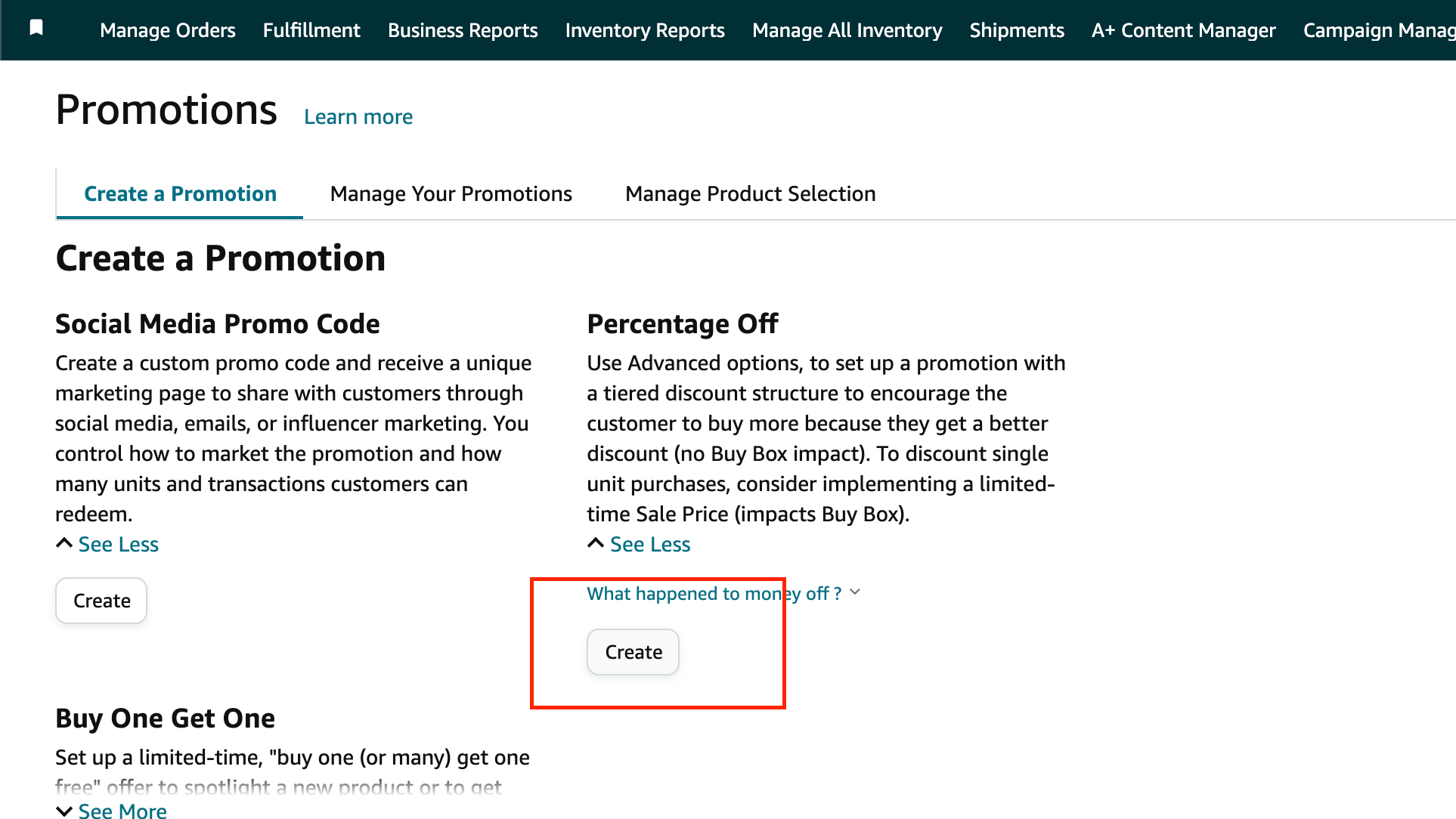 Here are the steps to create a Percentage Off Promotion on Seller Central:
