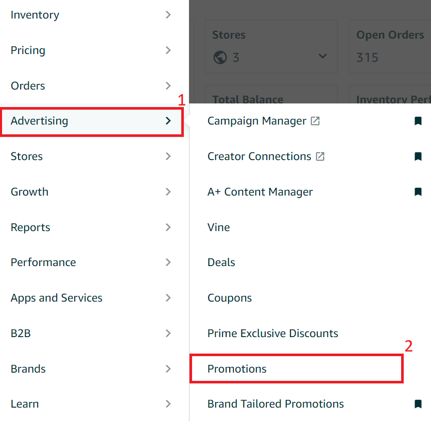 To set up Amazon Promotions in Seller Central, go to Advertising > Promotions