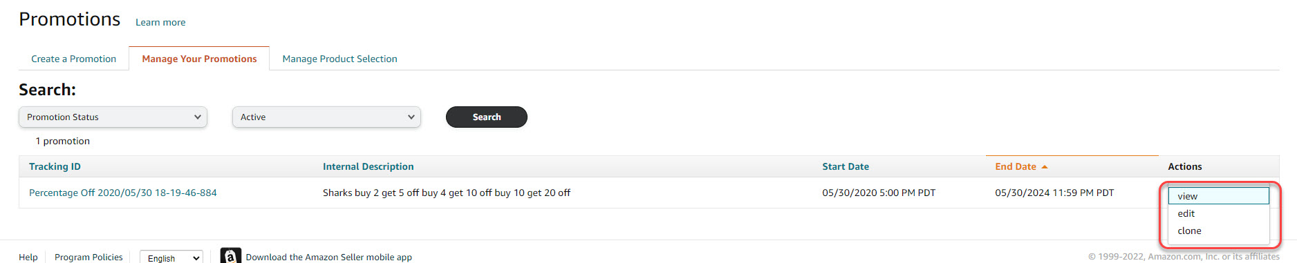 Navigate to the "Manage Your Promotions" tab to access a comprehensive list of promotions along with their respective durations. From this tab, you can seamlessly review, edit, or duplicate for use with another promotion.