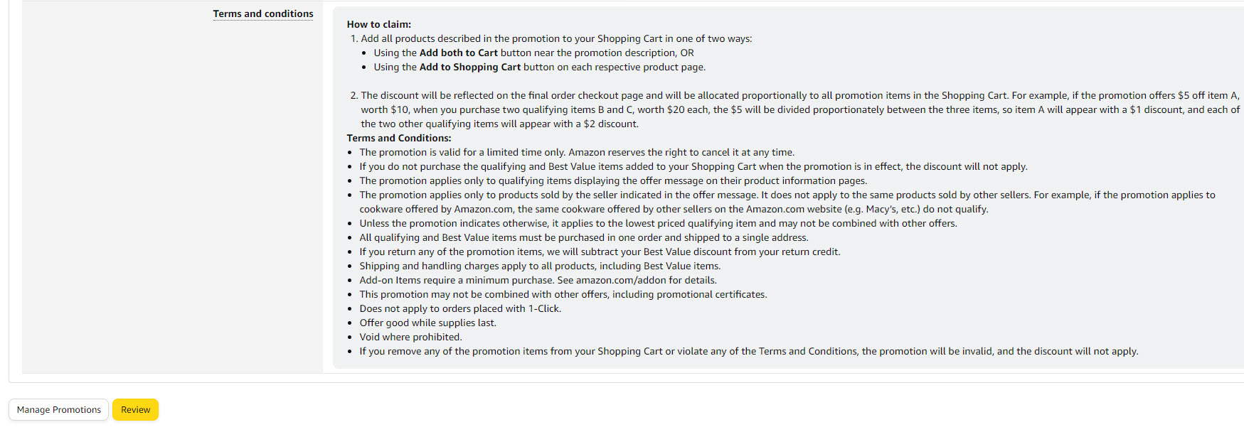 Amazon Promotions can help your products stand out from the competition and stimulate sales. However, promotions are most effective when your offer is the Featured Offer (formerly known as "Buy Box"). Otherwise, the promotional messaging cannot appear on the detail page.