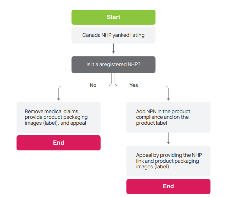- This product has been identified as Natural Health Product (NHP) or drug product, and it is subject to the provisions of the Food and Drugs Act (FDA) and its regulations. All NHPs and drug products must be licensed by Health Canada, meet labeling requirements, and comply with the terms of their market authorization. Amazon policy prohibits the sale or listing of unlicensed NHPs and drug products. Before submitting an appeal please ensure the required labels, including the DIN or NPN and the ingredient list, are clearly visible and uploaded to the product detail page and that all claims comply with the terms of the product’s market authorization. Please also review Amazon's policy for Drugs and NHPs - https://sellercentral.amazon.ca/gp/help/external/help.html?itemID=200164490&language=en_CA&ref=efph_200164490_relt_200164650 and/or Amazon's policy for Cosmetics - https://sellercentral.amazon.ca/gp/help/external/help.html?itemID=200164470&language=en_CA&ref=efph_200164470_relt_200164490