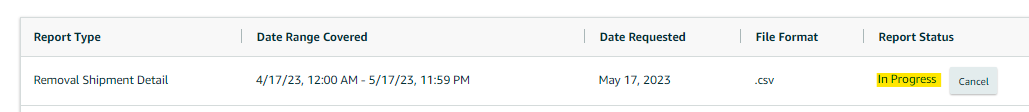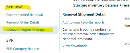Objective: To outline the process for downloading a Removal Shipment Detail Report. This report provides detailed information on removal shipments from an Amazon fulfillment center, including the SKU, quantity, reason for removal, and disposition of the inventory. The objective is to enable effective tracking and management of removal shipments, ensuring accurate inventory control and decision-making.