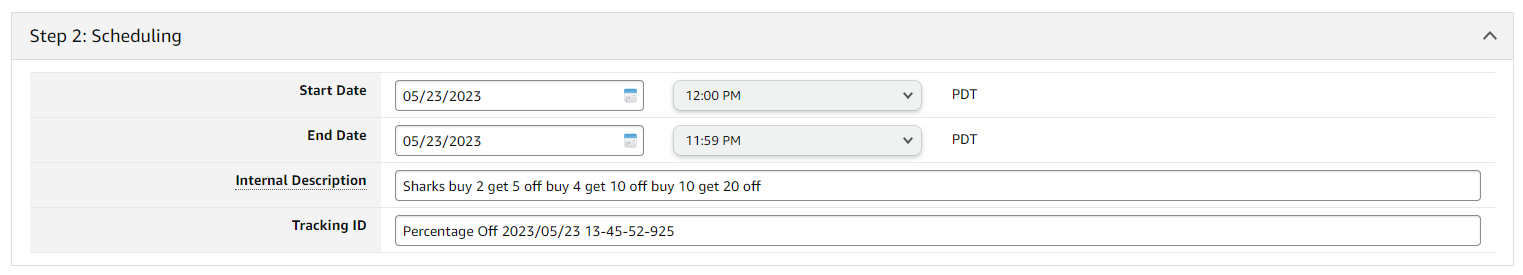 - Make sure to update the Tracking ID and Internal Description in "Step 2: Scheduling" to avoid confusion with the original promotion.