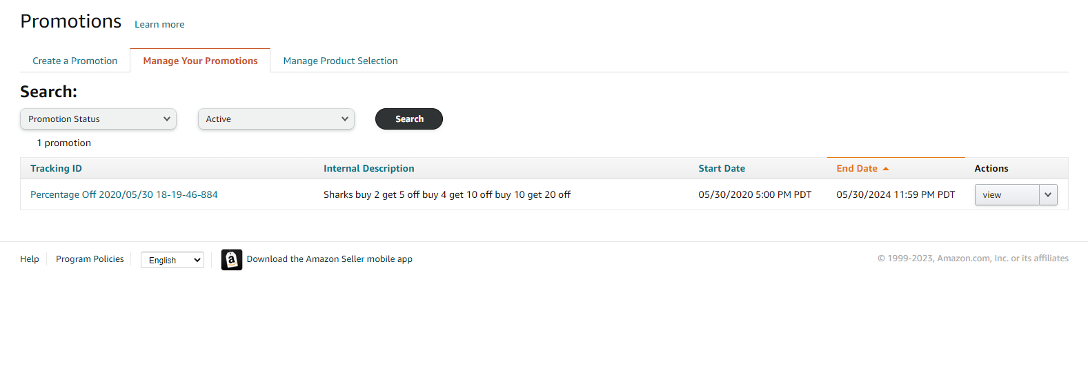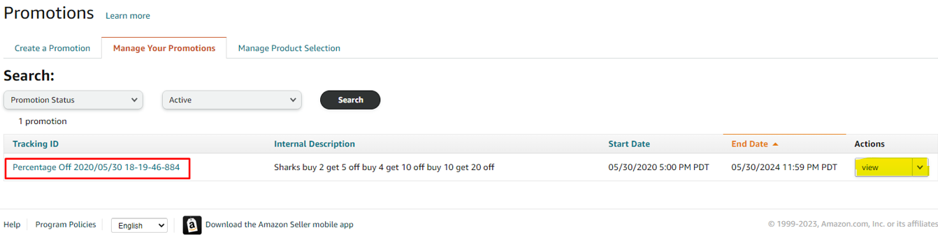 - To duplicate a Buy One Get One Promotion, start by selecting "Manage Promotions" from the Drop-Down Menu of the "Advertising" tab on the top menu of Seller Central.