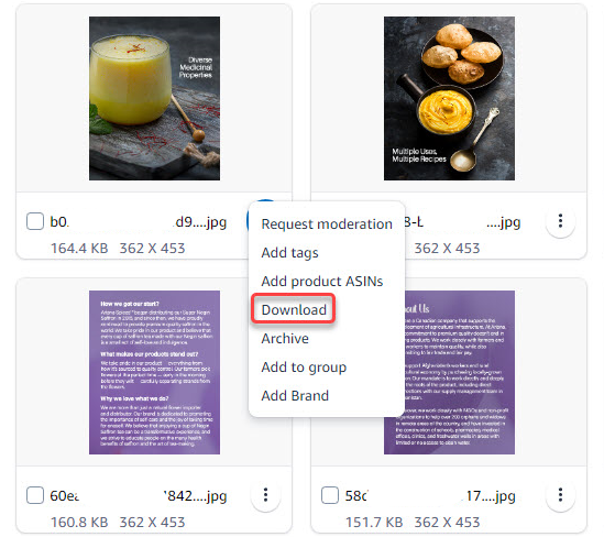 NOTE: Creative assets stores all the image assets that we used for the brand store, A+ content, and brand story. So instead of downloading the image assets from the live brand store with possibly lower quality, Creative assets allow us to reuse them with the same quality.