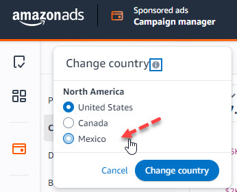 - On the upper left-hand side of the page, click the country to expand the dropdown menu.