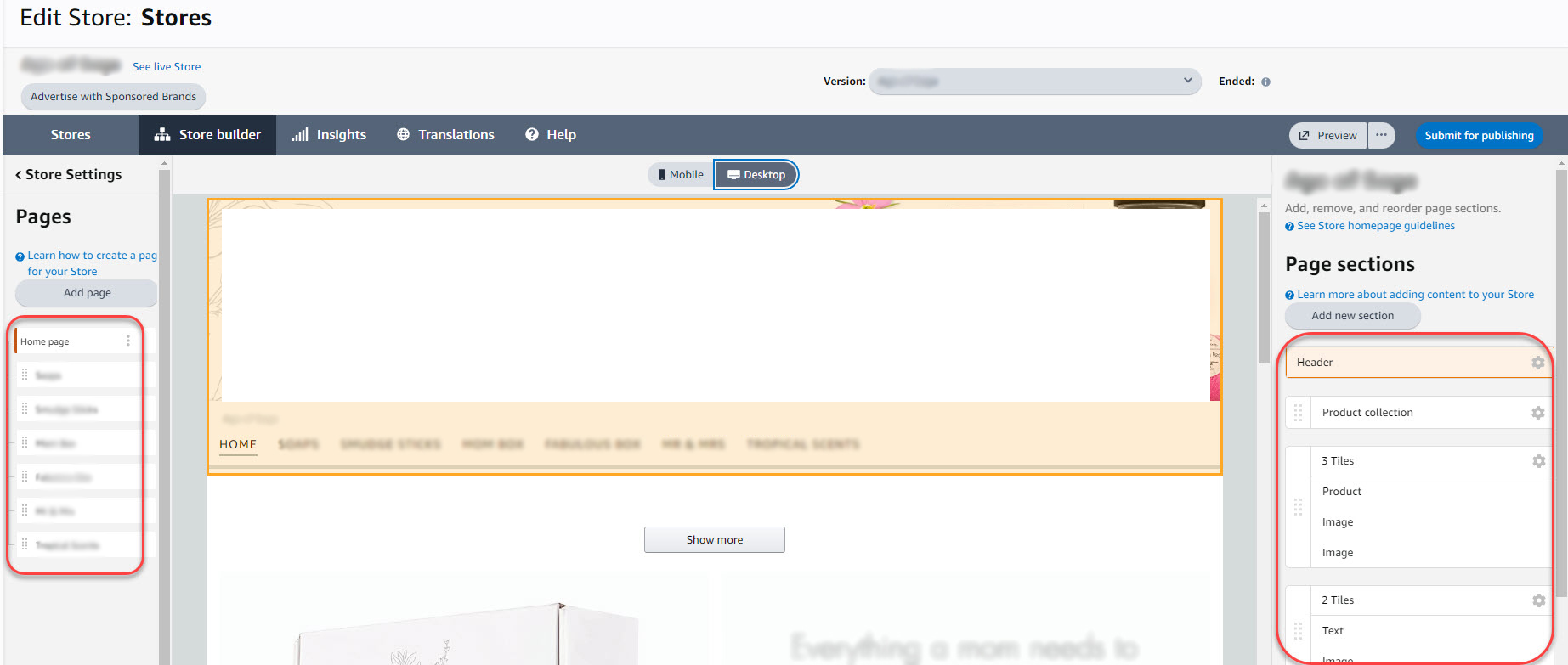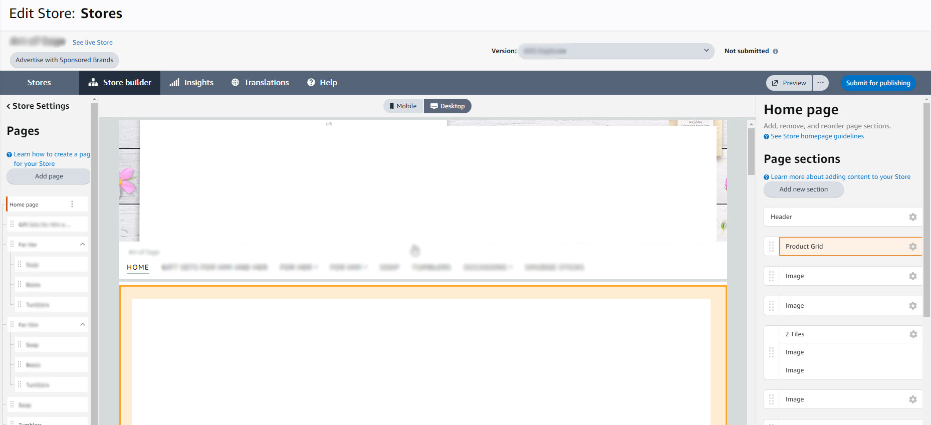 - Once open, you can now create or modify the store. Including the store settings/pages/sub-pages/sections/tile