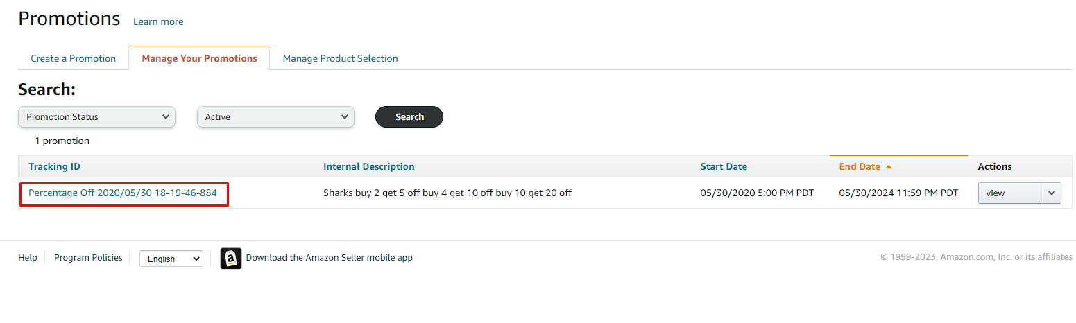 - When you see your Buy One Get One Promotion in the table below, click the Tracking ID to open it up for viewing.