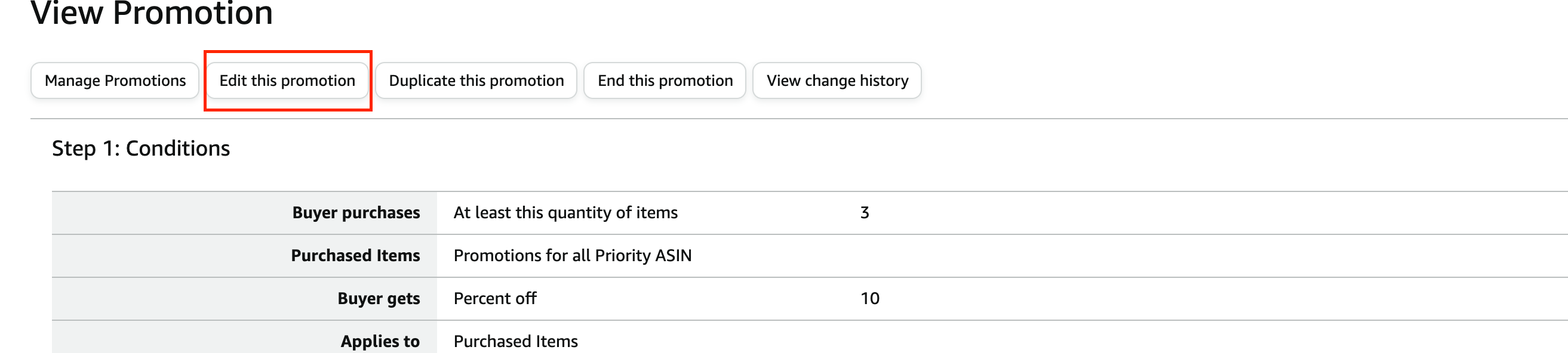 4. Once you're on the Promotion page, click the "Edit this Promotion" button and make the necessary changes.