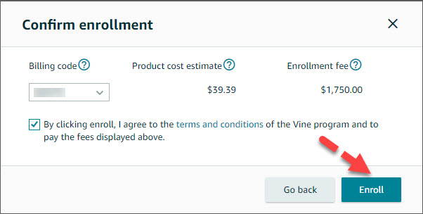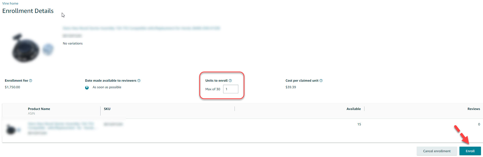 Type in how many units will be enrolled in the Vine program. Click "Enroll".