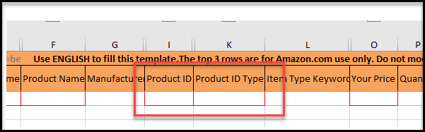 To identify these mandatory values, open your feed file template, then input the product type category. The selected category's required fields will be marked in red, as seen below.