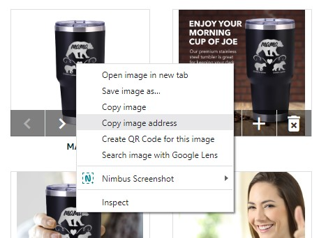 13. The images are also not picked up on the CLR. To add the images, go to the Images tab on the backend, right-click on the images, and select “Copy image address”. Then, paste the links on the cells. Main Image URL column for the main image and Other Image URL columns for the secondary images.