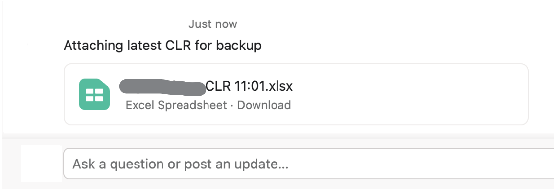 3. Attach the CLR on the Asana task for backup purposes.