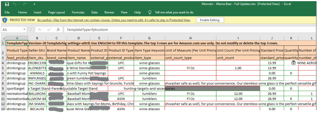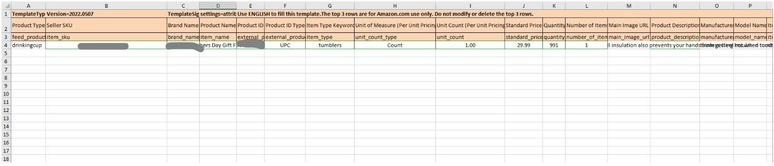 Caution!!! This step is optional but on rare occasions, Amazon wipes out images when conducting a full update flat file on EU listings. If you are working on EU listings, make sure to fill up the image URL columns.